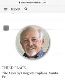 I am very pleased to announce that my short story, The Lion, was awarded third place in the annual Santa Fe New Mexican Pasatiempo Story Contest. The story, set in Africa, may be viewed online at: